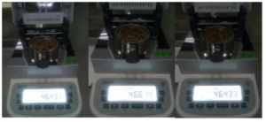 | 產(chǎn)品 | 溫度(℃) | 重量(g) | 時(shí)間(min) | 水分(%) |