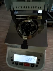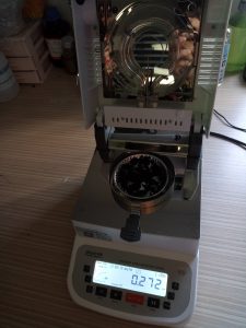 3、平衡后將樣品瓶移出,取出樣品,用電子天平稱(chēng)取樣品置于樣品瓶?jī)?nèi),然后在水分儀上點(diǎn)擊開(kāi)始測(cè)量,同時(shí)將樣品瓶裝入加熱槽。