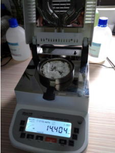 測試樣品:取5克大米,用粉碎機(jī)打成粉末狀,置于不銹鋼托盤中平鋪均勻,溫度設(shè)置120℃用儀器進(jìn)行加熱,約12分鐘后檢測結(jié)束,檢測數(shù)據(jù)顯示14.38%;