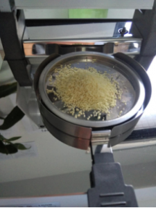 第三步,往測(cè)試樣品盤上倒入樣品,不宜過(guò)多,也不宜太少,一般取5~10克即可。(不同產(chǎn)品取的克重不同)。雞精我們?nèi)?克來(lái)測(cè)量即可