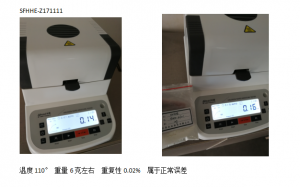 | 型號 | 溫度(℃) | 樣品克重(g) | 檢測時間(min) | 檢測數(shù)據(jù)(%) | 備注 |