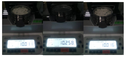 2 陶瓷粉末應(yīng)盡可能平鋪均勻且鋪滿整個托盤,使得陶瓷粉末中的水分的完全烘干且數(shù)據(jù)更加精準(zhǔn)。