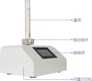 隨著振動(dòng)次數(shù)的增加,量筒管里的顆?;蚍勰┲饾u振實(shí),振動(dòng)次數(shù)達(dá)到設(shè)定的次數(shù)后,機(jī)械振動(dòng)裝置停止振動(dòng),讀出量筒顆?;蚍勰┑捏w積,根據(jù)密度的定義(即重量除以體積)從而求出振實(shí)后顆粒或粉末的密度。